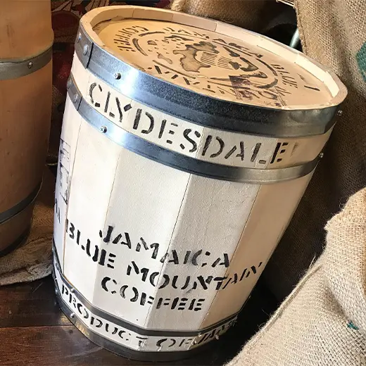 樽入は高品質の証、ジャマイカからの輸出の際 ブルーマウンテンのみ使われてます。