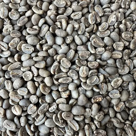 生豆は、青緑色をしています。これはこの地域特有の精選方法、スマトラ式によるものです。