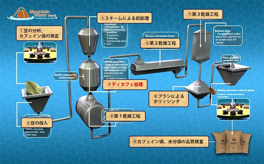 カフェイン90%以上除去、マウンテンウォータープロセス